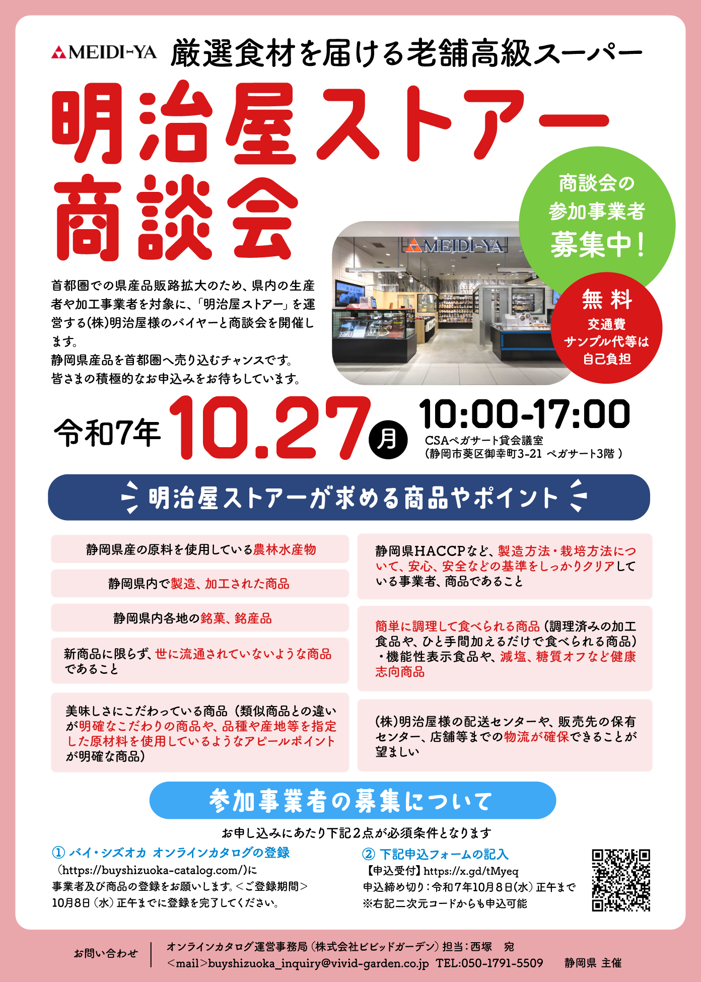 島田市からのお知らせ【参加事業者募集】「株式会社明治屋(明治屋ストアー)」様との商談会(静岡県主催)